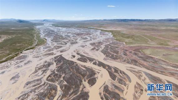 这是2019年8月9日拍摄到的位于青海省格尔木市唐古拉山镇的长江正源沱沱河河道的照片(无人机照片)。 新华社记者 吴刚摄