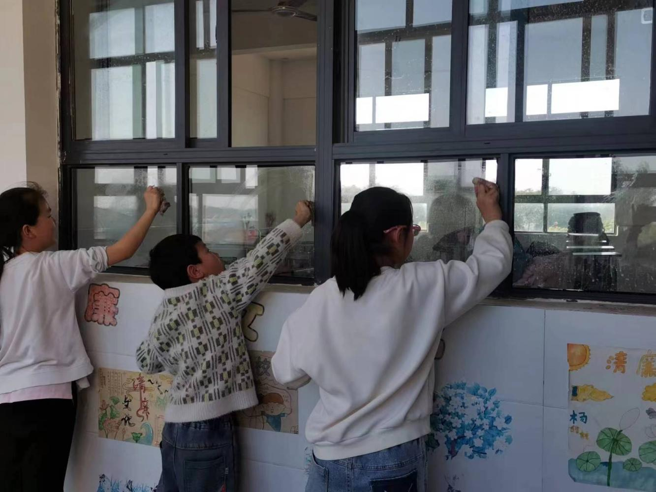 4月28日下午,学校全体师生进行校园大扫除活动,同学们在老师的带领下,有条不紊地对教室、清洁区,尤其是卫生死角进行了认真清理。擦洗门窗、瓷砖墙面,厕所……同学们干得热火朝天,校园的角角落落都是他们忙绿的身影!在全校师生的共同努力下,方阁小学焕然一新!