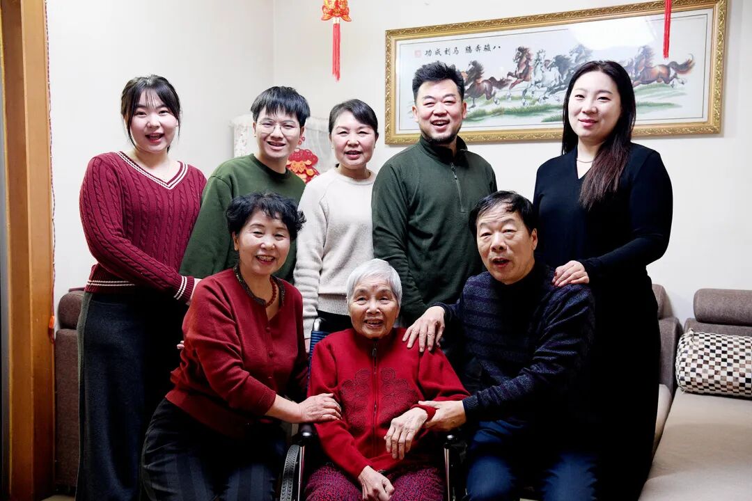 “爸爸,现在有电梯了,我们把外婆推到院里再拍一张吧。”一家人穿戴一新,推着外婆来到户外,特别叮嘱摄影师,要把加装电梯后的小区面貌拍进镜头里。